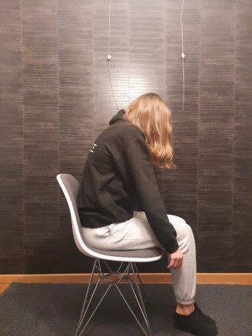 Gerade hinsetzen. Hände auf die Oberschenkel legen. Beim Einatmen das Brustbein nach vorne und oben strecken und die Schultern leicht zurückziehen. Dies 5-10 Sekunden halten. Beim Ausatmen nach vorne beugen und den Rücken rund machen. Dabei den Kopf jedoch immer gerade halten. Auch diese Position 5-10 Sekunden halten. Wieder in eine aufrechte Haltung zurückkehren und 10 Sekunden ausruhen. Dies alles 5 Mal wiederholen.